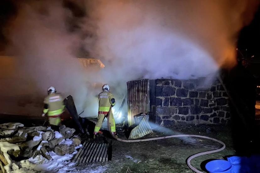 Yangında odunlukta maddi hasar meydana gelirken, olayla ilgili inceleme başlatıldı.