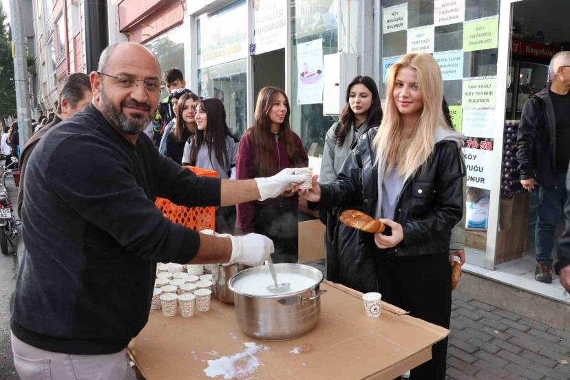 Sivas’ta esnaflık yapan Abdullah Arslan, dükkanına gelen bir öğretmenle yaptığı sohbetin ardından anlamlı bir etkinliğe imza attı. Sohbet sırasında öğretmenin öğrencilerin köy sütünü içmek istemediklerini ve ‘kötü koktuğunu’ düşündüklerini söylemesi üzerine Arslan, bu yanlış algıyı ortadan kaldırmak için bir organizasyon düzenlemeye karar verdi. Hazırlıkları kısa sürede tamamlayan Arslan, sabah yaklaşık 100 öğrenciyi iş yerinde ağırlayarak, onlara sıcak süt ve simit ikram etti. Etkinliğe katılan öğrenciler hem keyifli vakit geçirdi hem de doğal sütün lezzetini tattı. Arslan, köy sütünün önemine değinerek, böyle bir organizasyon yaptıklarını söyledi.