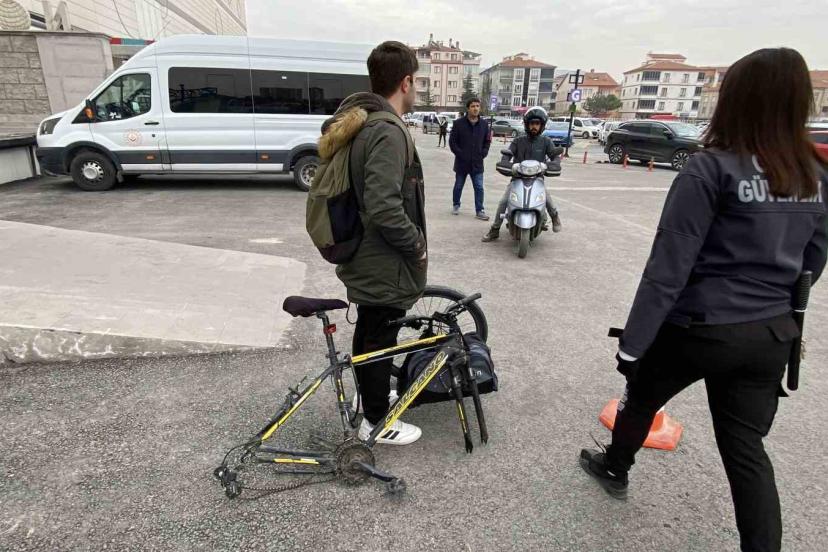 Aksaray’da lise öğrencisinin bir AVM’nin otoparkına kilitlediği bisikleti çalmak isteyen hırsız ya da hırsızlar, bisikletin k...