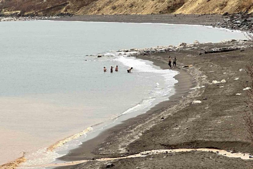 Bitlis’te yüksek kesimlerde kar nedeniyle araçlar yolda kalırken, Van Gölü kıyısını kullanan vatandaşlar ise mangal yapıp suya girdi.