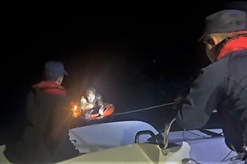 Muğla’nın Bodrum ilçesi açıklarında bitkin halde bulunan düzensiz göçmen kurtarıldı.