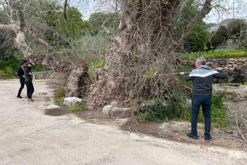 Muğla’nın Bodrum ilçesinde doğa yürüyüşü sırasında fark edilen ve gövde genişliğiyle dikkati çeken yaklaşık 2 bin yıllık çınar ağacının "anıt ağaç" olarak tescil edilmesi için çalışma başlatıldı.