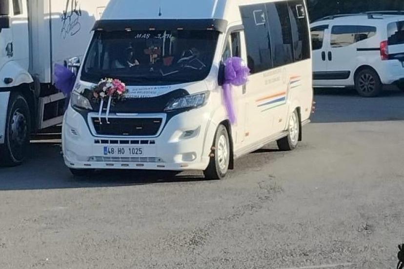 Bodrum’da dünya evine giren Umut Akkaya ile Seminay Akkaya, şehir içi ulaşımda kullandıkları dolmuşu gelin arabasına dönüştürerek ilçede unutulmaz bir gün yaşattı.