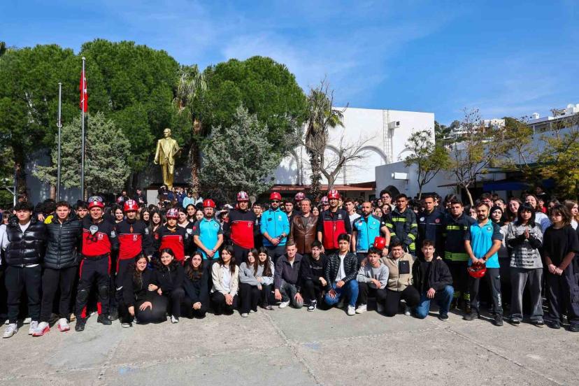 Muğla’nın Bodrum ilçesinde, 1-7 Mart Deprem Haftası kapsamında Kanuni Sultan Süleyman Anadolu Lisesi’nde deprem tatbikatı gerçekleştirildi.