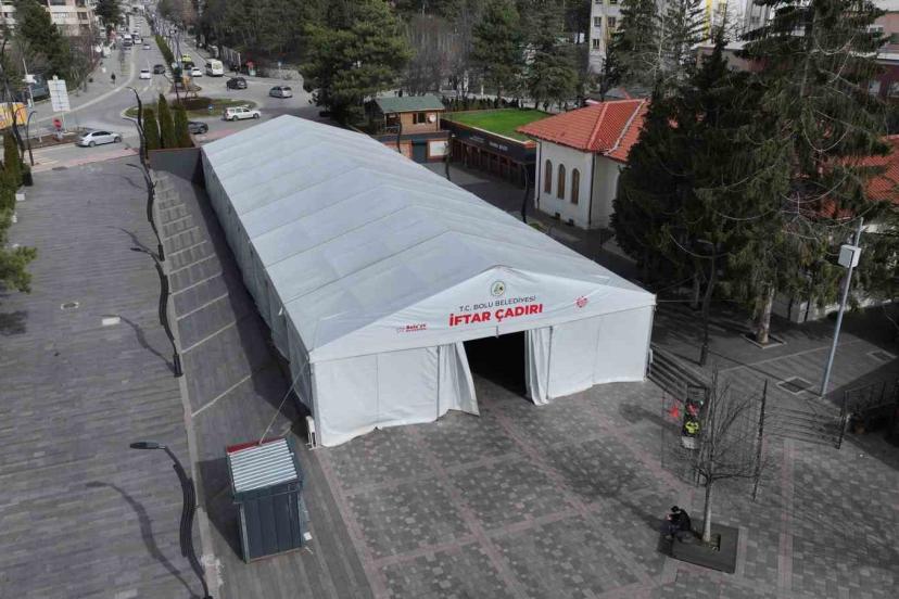 Bolu Belediyesi, Ramazan ayı hazırlıkları kapsamında Kent Meydanı’na iftar çadırı kurdu.