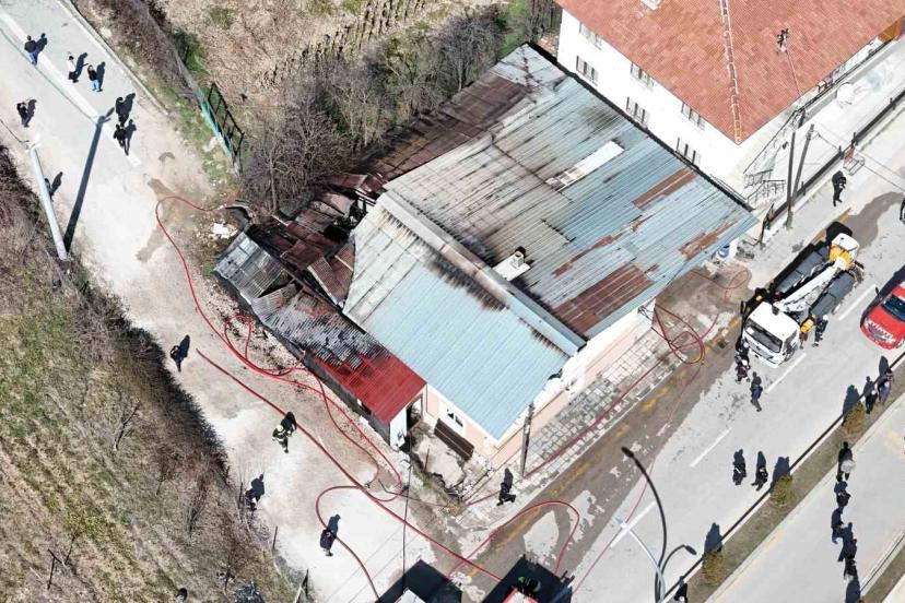 Bolu’da, eski bir mobilya atölyesi ile bitişiğindeki 2 katlı evde yangın çıktı.