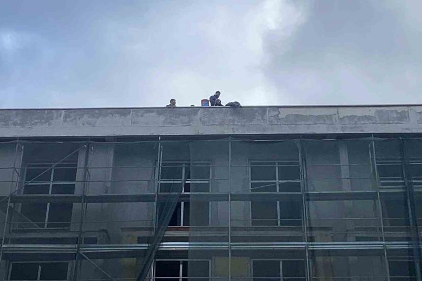 Bolu’da yaklaşık 1.5 yıldır devam eden uygulama okulu inşaatında çalışan 8 işçi, 3 aydır maaşlarını alamadıklarını ileri sürerek inşaatın çatısında eylem yaptı.