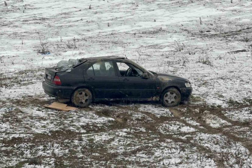 Boş araziye uçan otomobilin sürücüsü yaralandı