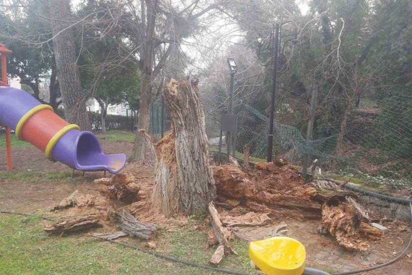İlk olay, Bozdoğan’daki Yardibi Parkı’nda meydana geldi. Parkta vakit geçiren İ.K. ile torunu A.K.’nin yanına aniden devrilen ağaç büyük korku oluşturdu. Ağacın altında kalmaktan son anda kurtulan babaanne İ.K. bacağından yaralandı. Torunu A.K. ise olayı yara almadan atlattı. İhbar üzerine olay yerine itfaiye ve sağlık ekipleri sevk edildi. İlk müdahalesi parkta yapılan İ.K., ambulansla hastaneye kaldırıldı. Olayla ilgili inceleme başlatıldı.