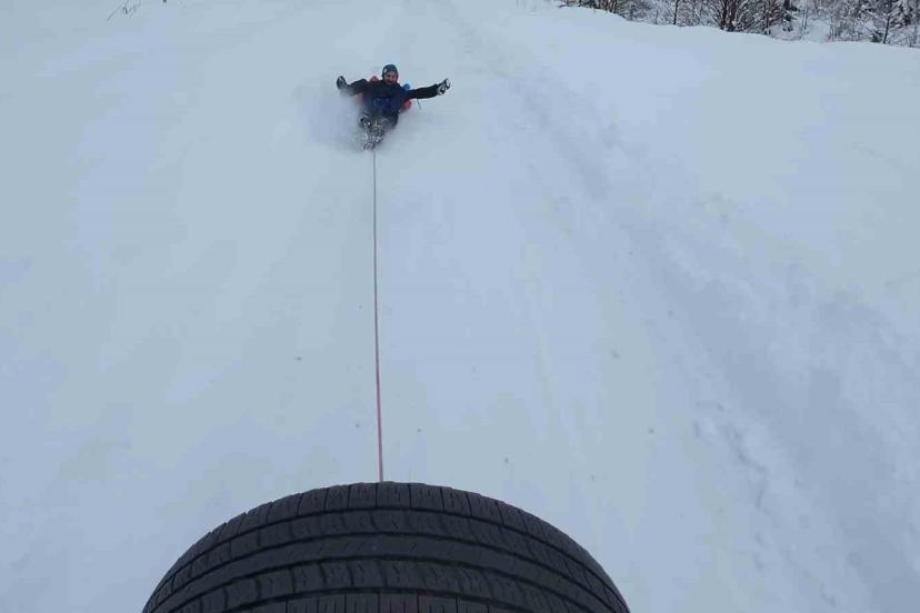 Rize’de şiddetli kar yağış kenti beyaza bürüdü. Yaylalarda 1 metreyi aşan kar fotoğraf tutkunlarına kartpostallık görüntüler verirken adrenalin tutkunlarına da keyifli dakikalar yaşattı. Adrenalin tutkunu Oğuz Bal ve Volkan Aytaç isimli 2 arkadaş, yağan karı fırsat bilerek Rize’nin İkizdere ilçesindeki Sivrikaya Yaylası’na çıktı. 4x4 araçlarının arkasına bir ip vasıtası ile branda bağlayan 2 kafadar, yanlarında bulunan diğer arkadaşlarından aracı sürmesini rica etti. Brandanın üzerinde oturan 2 kafadar arabanın da kendilerini çekmesiyle karda kayarak keyifli anlar yaşadı. Sürücü olan arkadaşlarına ’biraz yavaş gitsene vicdansız’ diye seslenseler de bununla da yetinmeyen ikili bu kez brandanın üzerinde ayağa kalktı. Ayakta da kaymayı başaran Aytaç ve Bal’ın o anları renkli görüntülere sahne oldu.