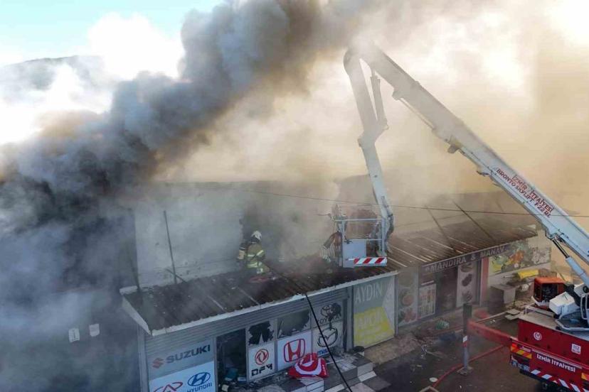 İzmir’in Buca ilçesine bağlı İnönü Mahallesi 6. Sanayi Sitesi’nde bulunan bir otomobil yedek parça dükkanında saat 11.30 sıralarında yangın çıktı. İş yerinden yükselen yoğun duman ve alevleri fark eden çevredekiler, durumu vakit kaybetmeden 112 Acil Çağrı Merkezi’ne bildirdi. İhbar üzerine İzmir Büyükşehir Belediyesi İtfaiye Dairesi Başkanlığı ekipleri bölgeye sevk edildi. 14 araç ve 70 personelle olay yerine ulaşan ekipler, yangına hızla müdahale etti. Henüz çıkış nedeni belirlenemeyen yangın, iş yerinde bulunan yanıcı malzemelerin de etkisiyle büyüyerek bitişik nizamda bulunan iki dükkana daha sıçradı. Sanayi sitesinde paniğe yol açan yangın sırasında zaman zaman patlama sesleri duyuldu. Ekiplerin yoğun ve koordineli çalışması sonucu yangın, yaklaşık iki saat süren müdahalenin ardından kontrol altına alındı.