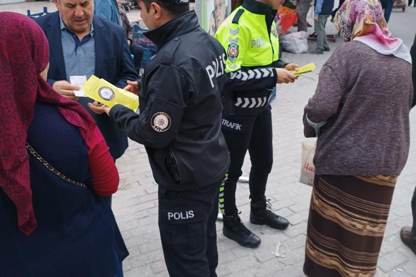Buldan Pazaryerinde vatandaşları dolandırıcılara karşı uyaran Buldan İlçe Emniyet Müdürülüğü ekipleri, broşürde dağıtarak dolandırıcılara karşı yapılması gerekenler hakkında bilgiler verdi.