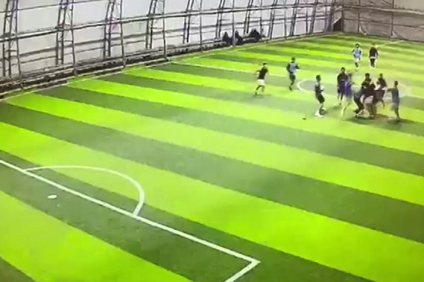 Kavga anı ise halı sahanın güvenlik kamerasına yansıdı. Görüntülerde 2 kişinin tartışması sonrasında tekme tokatlarla birbirine girdiği anlar yer aldı.