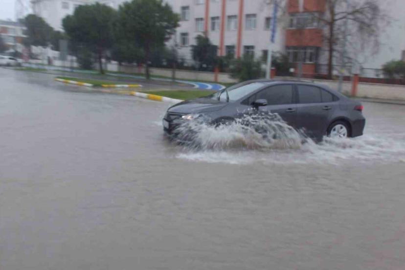 Burhaniye de sağanak yağmur yolları göle çevirdi