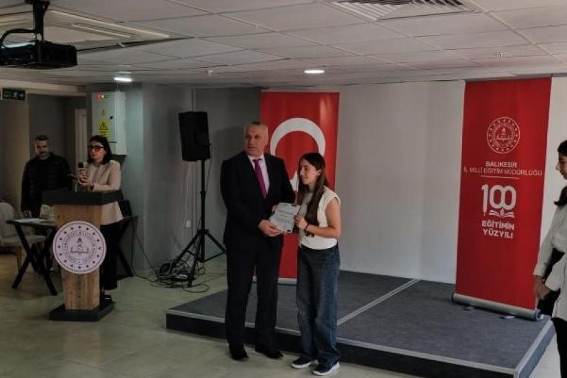 Başarılı öğrenciler Balıkesir İl Milli Eğitim Müdürü Selahattin Kal tarafından ödüllendirildi. İlçe Milli Eğitim Müdürlüğünden yapılan açıklamada, "TÜBİTAK 2204-B Ortaokul Öğrencileri Araştırma Projeleri Yarışması Bursa Bölge Sergisi’nde Coğrafya kategorisinde ’’Pirina ile tekstilin dönüşümü sürdürülebilir yalıtım’’ isimli projeleri ile 3. lük derecesi alan Burhaniye Bilim Sanat Merkezi öğrencilerimiz İl Millî Eğitim Müdürümüz Selehattin Kal, İlçe Millî Eğitim Müdürümüz Bora Zihni, diğer İlçe Milli Eğitim Müdürleri, Kurum Müdürü Özcan Gülhan, danışman öğretmenleri Çiğdem Dağcı ile birlikte Gazi Mustafa Kemal Turizm Mesleki ve Teknik Anadolu Lisesi Uygulama Oteli’nde düzenlenen programa katıldılar. Bölge finalinde derece elde eden öğrencilere teşekkür belgeleri takdim edilirken, öğrencilerin başarısı pasta kesilerek kutlandı. Bilimsel üretimi teşvik eden bu önemli süreçte emek veren öğrencilerimizi, danışman öğretmenlerimizi ve tüm eğitim paydaşlarımızı tebrik ediyor; Türkiye finallerinde başarılarının devamını diliyoruz" sözlerine yer verildi