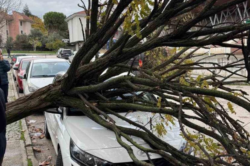 Bursa’da araçların üzerine devrilen ağaç korku dolu anlar yaşatırken, sadece maddi hasarın meydana gelmesi sevindirdi.