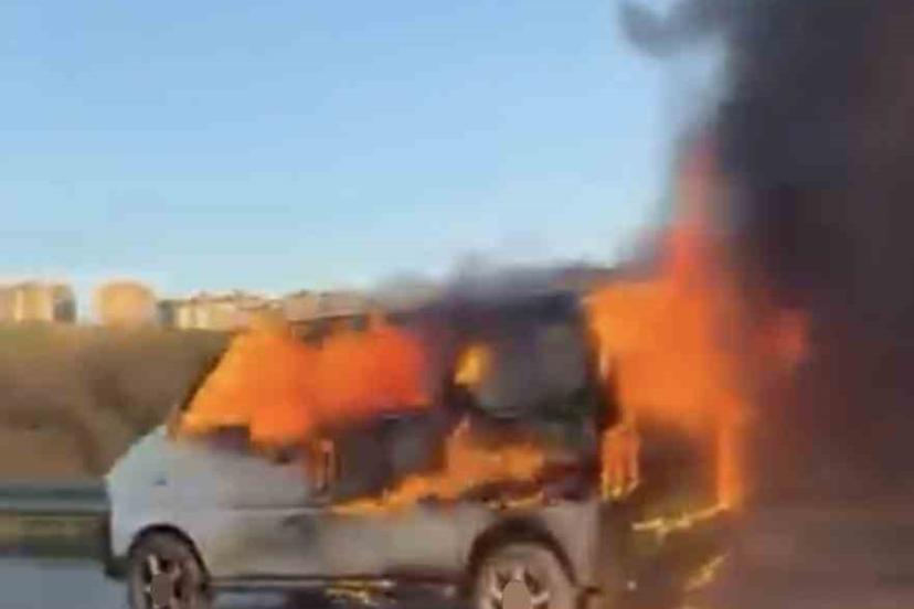 Bursa çevre yolunda seyir halindeki hafif ticari araç alev aldı. Yangın, itfaiye ekiplerinin müdahalesiyle söndürüldü.