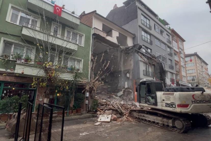İlginç yıkım, Bursa’nın Osmangazi ilçesi Sakarya Mahallesi 10. Yavuz sokakta gerçekleşti. Eski binanın yıkılarak yerine yeni bina yapımı için hareke geçen yüklenici firma, iş makineleriyle sokağa geldi. Binanın yıkımı için harekete geçen iş makinesi, çatı kısmından aşağı doğru binayı yıkacağına zeminden işe başladı. Binan ilk iki katı yıkı yıkılırken, 3’üncü ve 4’üncü katı yandaki binaların arasında asılı kaldı.