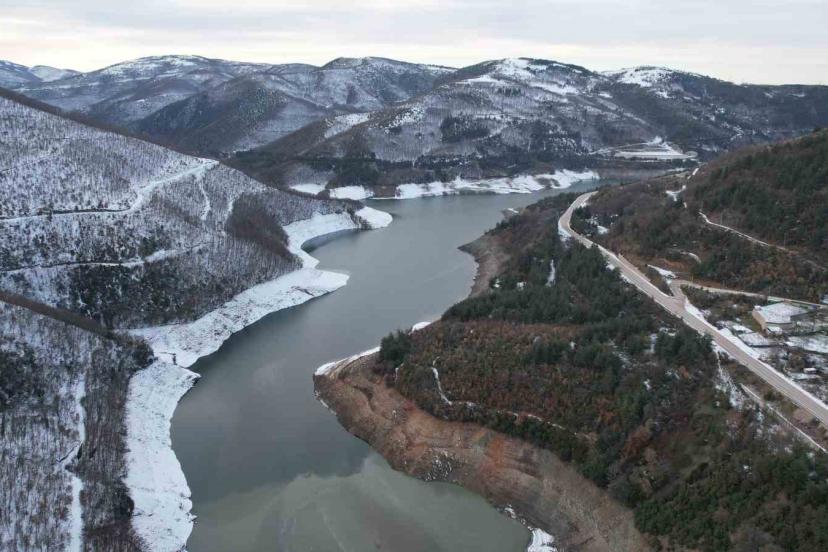 Bursa’da son günlerde etkili olan kar yağışları, kentin önemli su kaynaklarından biri olan Doğancı Barajı’na can suyu oldu. Karlarla kaplanan tepelerin arasında kalan baraj, havadan görüntülendi.