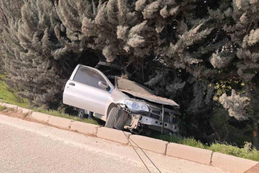 Bursa’da kontrolden çıkan otomobil ağaçlık alana uçtu, 1 yaralandı