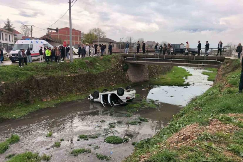 Bursa’nın İnegöl ilçesinde kontrolden çıkarak dere yatağına uçan otomobildeki 3 kişi yaralandı.