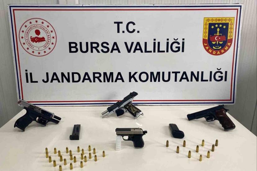 Bursa’da jandarma ekiplerince düzenlenen operasyonda 4 ruhsatsız silah ve çok sayıda mühimmat ele geçirildi.