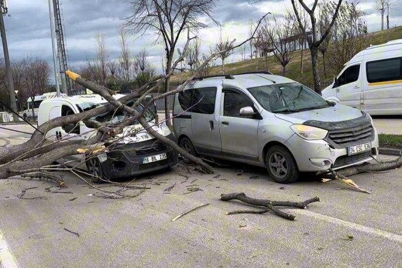 Kent merkezinde hızı 75 kilometreye ulaşan rüzgar nedeniyle, Osmangazi ilçesi Zafer Mahallesinde cadde üzerine devrilen ağaçlar, seyir halindeki hafif ticari iki aracın üzerine düştü. Faciadan eşiğinden dönen sürücüler yaşadığı şok sonrası araçlarından inip 112 ekiplerinden yardım istedi. İhbar üzerine olay yerine sevk edilen itfaiye ekiplerince ağaçların altında kalan araçlar kurtarıldı.