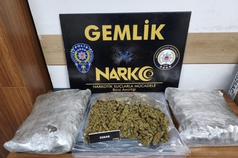 Bursa İl Emniyet Müdürlüğü ekiplerince düzenlenen operasyonda 3 kilo 700 gram esrar maddesi ele geçirildi, gözaltına alınan ş...