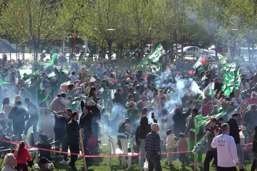 Millet Bahçesi ve Hüdavendigar Kent Parkı’nda toplanan Bursaspor taraftarları, maçı hep birlikte izleyerek şampiyonluk sevincini yaşadı. Maçın bitiş düdüğüyle birlikte ellerinde yeşil-beyaz bayraklarla meydanları dolduran taraftarlar, meşaleler yakarak şampiyonluğu kutladı.