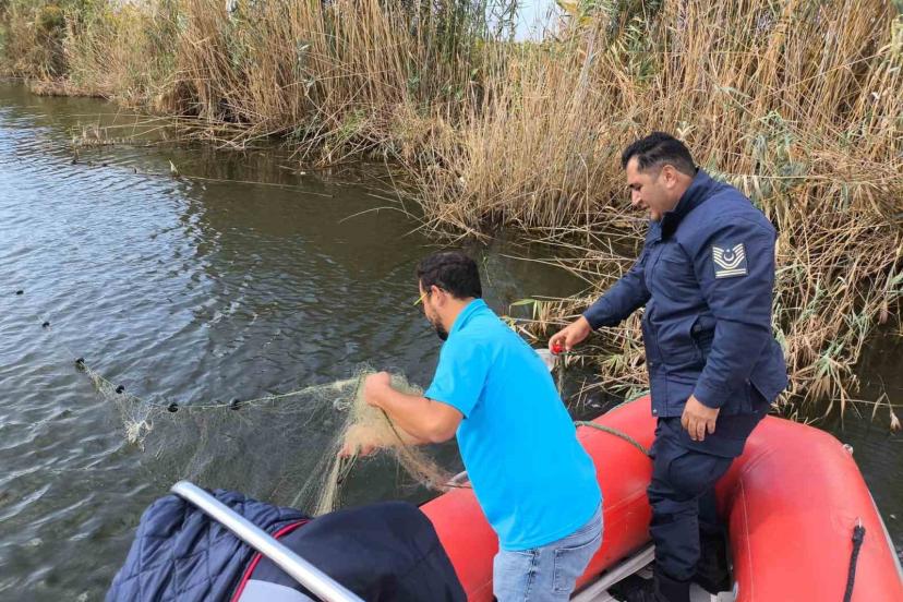 Söke İlçe Tarım Müdürlüğü ve Aydın İl Jandarma Komutanlığı ekipleri Büyük Menderes Havzası’nda denetim gerçekleştirdi. Yapılan denetimlerde kullanımı yasak ağlar tespit edilerek imha edildi.
