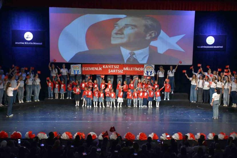 23 Nisan Ulusal Egemenlik ve Çocuk Bayramı etkinlikleri, Büyükçekmece Atatürk Kültür Merkezi’nde yoğun katılımla gerçekleştirildi. Çocukların sahne performansları bayram ruhunu en güzel şekilde yansıtırken, programa 24. Dönem CHP Milletvekili Süleyman Çelebi, belediye meclis üyeleri, belediye başkan yardımcıları ve eğitmenler katıldı. Programda Büyükçekmece Çocuk Oyun ve Etkinlik Merkezleri Korosu konser verirken, Halk Akademisi Sahne Sanatları tarafından hazırlanan İzmir, Kafkas ve Gaziantep yörelerine ait halk oyunları gösterileri büyük alkış aldı. Halk Akademisi örgün eğitim öğrencileri Aysima Özen ve Melek Su Lale’nin seslendirdiği şiirler ise, salonda duygusal bir atmosfer oluşturdu. Bale gösterisi, sahnedeki uyum, disiplin ve estetik bütünlüğüyle izleyicilerden yoğun alkış alarak, programın öne çıkan performansları arasında yer aldı. Bağlama ve gitar dinletileri, izleyicilere geleneksel ve modern ezgilerin uyumunu hissettirdi. Büyükçekmece Belediyesi Gençlik ve Spor Müdürlüğü’nün Kids dans ve jimnastik gösterileri, çocukların enerjisi ve disipliniyle izleyenlerden tam not aldı. Halk Akademisi Çocuk Korosu’nun sahne performansı salonda coşkuyu artırırken, geleneksel sokak oyunları gösterisi geçmişten günümüze uzanan kültürel değerleri hatırlattı. Program, modern dans gösterisiyle etkileyici bir final yaptı.