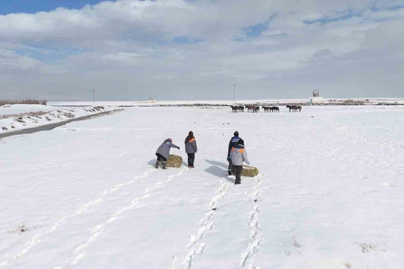 Yoğun kar yağışının etkili olduğu Kayseri’de Büyükşehir Belediyesi ekipleri, farklı bölgelerde gerçekleştirdikleri çalışmalarla kış şartlarında güvercin, kedi, köpek ve yılkı atlarına, yem ve mama ulaştırdı.