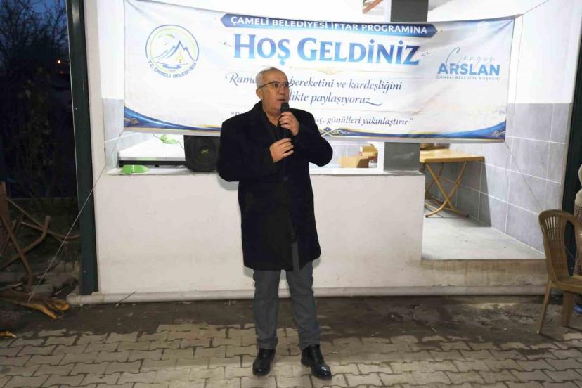 İftar programında konuşan Belediye Başkanı Cengiz Arslan, ev sahipliğinden dolayı Burhan Sönmez’e teşekkür ederek iftar sofrasına katılan tüm vatandaşlara şükranlarını sundu.