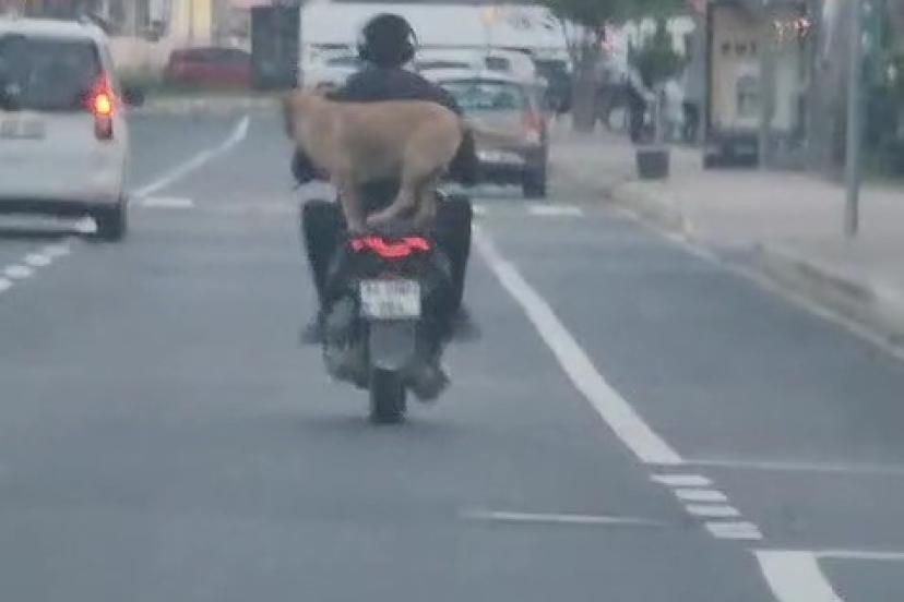 Çanakkale’nin Gelibolu ilçesinde motora artçı olarak binen köpek görenleri hem şaşırttı hem de neşelendirdi. O anları bir başka araçta olan vatandaş cep telefonu kamerasıyla kayda aldı.