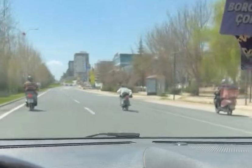Olay, Malatya Caddesi’nde meydana geldi. Edinilen bilgiye göre, bir şahıs motosikleti üzerine uzanarak sürdü. Kask dahil hiçbir önlem almayan sürücü, yaptığı davranışla da adete canını hiçe saydı. Bir süre motosikletin üzerine uzanarak giden sürücü, trafikteki başka bir sürücünün cep telefonu kamerasına yansıdı.