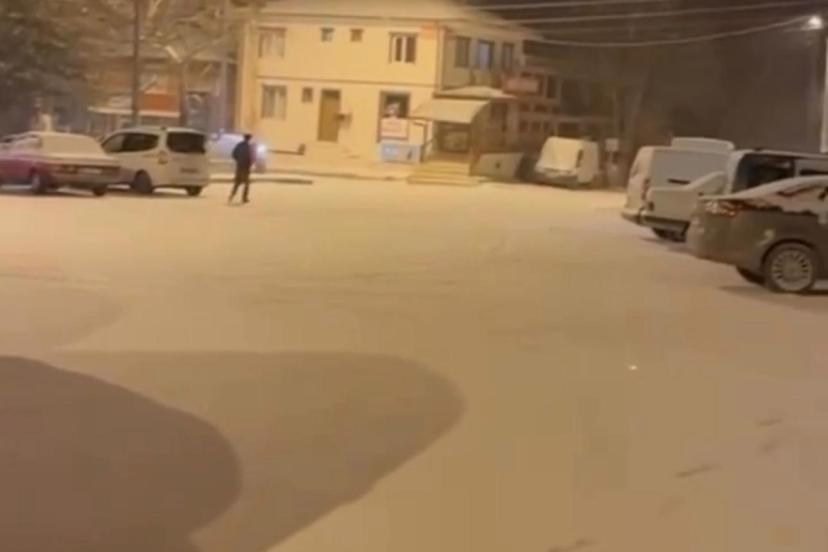 Çankırı’nın Yapraklı ilçesinde hava sıcaklığının sıfırın altına düşmesiyle kar yağışı başladı. Etkili olan kar yağışının ardından ilçe merkezi kısa sürede beyaz örtüyle kaplandı. Kar yağışının sabah saatlerine kadar ara ara devam etmesi bekleniyor.