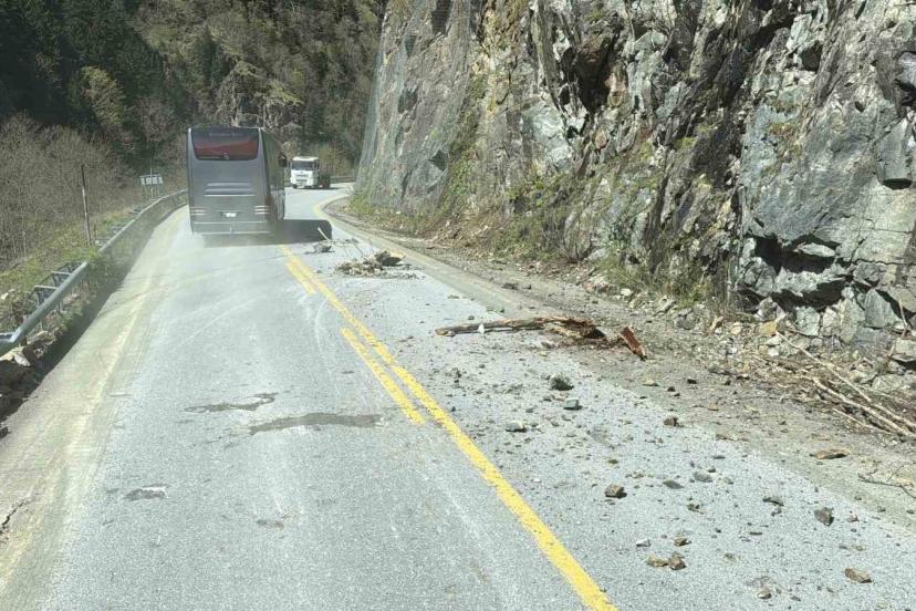 Çaykara-Uzungöl karayolunda kaya düşmesi nedeniyle ulaşım kontrollü sağlanıyor