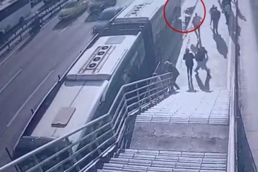 Yaşanan kaza anı çevredeki güvenlik kamerasına yansıdı. Görüntüde, Hüseyin C.’nin tekerlekli sandalyesiyle metrobüs yoluna düştüğü ardından metrobüsün çarptığı anlar yer aldı.