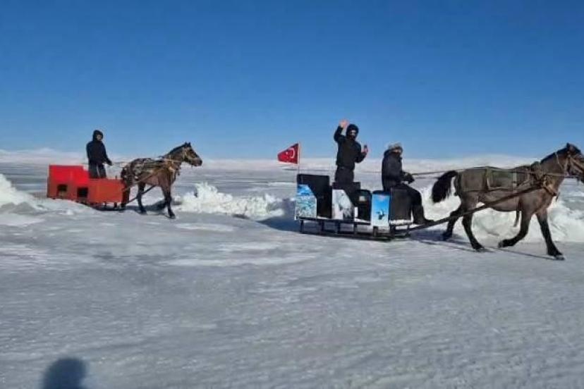 Çıldır Gölü tamamen dondu: Eksi 30 dereceyle atlı kızak keyfine hazır