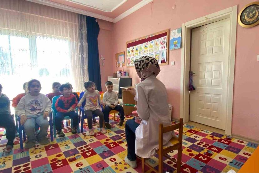 Dikmeli Köyü 4-6 yaş Kur’an kursunda eğitim gören öğrencilere yönelik düzenlenen eğitimde "Ağız ve Diş Sağlığı ile Sağlıklı Yaşam İçin Hijyen Kuralları" konuları ele alındı. Çocukların küçük yaşlardan itibaren öz bakım becerileri kazanmalarını amaçlayan programda, ağız ve diş sağlığının önemi anlatıldı. Sağlık ekipleri tarafından doğru diş fırçalama teknikleri maketler üzerinde uygulamalı olarak gösterilerek öğrencilerin konuyu daha iyi kavramaları sağlandı.