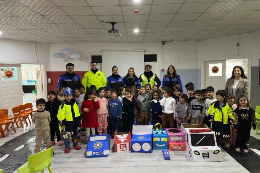 Toplum Destekli Polislik Büro Amirliği ile Trafik Tescil ve Denetleme Büro Amirliği ekipleri, Zübeyde Hanım Anaokulunu ziyaret ederek polislik mesleği, genel güvenlik kuralları ve trafik bilinci konularında öğrencileri bilgilendirdi. Etkinlik kapsamında öğrencilerle eğitici trafik uygulaması yapılırken, temel trafik işaretleri ve güvenli yaya davranışları uygulamalı olarak anlatıldı. Polis ekipleri, minik öğrencilerle birebir sohbet ederek onların merak ettiği soruları yanıtladı ve güvenli yaşam farkındalığını pekiştirdi.