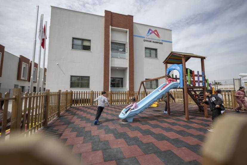 Toroslar, Mezitli ve Silifke’nin ardından 4’üncü çocuk kampüsü olarak hizmete giren merkezde, çocukların sosyal, bilişsel, duyusal ve motor becerilerini geliştirmeye yönelik 9 farklı atölye bulunuyor.