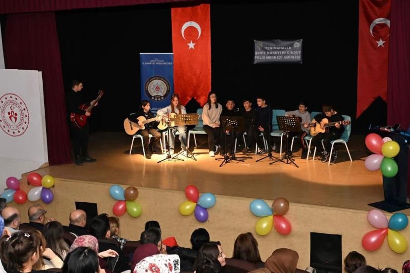 Çankırı Emniyet Müdürlüğü Toplum Destekli Polislik Şube Müdürlüğü tarafından yürütülen ÇOGEP ‘Kalpten Kalbe Yarenlik Projesi’nin kapanış programı düzenlendi. Şehit Uhud Kadir Işık Gençlik Merkezi’nde gerçekleştirilen program, saygı duruşu ve İstiklal Marşı’nın okunmasıyla başladı. Proje kapsamında eğitimlerini başarıyla tamamlayan kursiyer gençlere teşekkür belgeleri takdim edildi, program kapanış ve kokteyl ile sona erdi. Proje ile çocuk ve gençlerin suç ortamlarından uzak tutulması, verimli zaman geçirmelerinin sağlanması ve emniyet teşkilatı ile aralarındaki güven bağının güçlendirilmesi amaçlandı. Proje kapsamında düzenlenen sportif, kültürel ve eğitsel faaliyetlerle çok sayıda çocuk ve gencin kişisel ve akademik gelişimine katkı sağlanırken, gerçekleştirilen bilgilendirme çalışmalarıyla da polis-halk arasındaki iletişimin güçlendirilmesine katkı sunuldu.