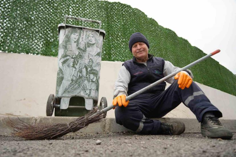Kocaeli’de çobanlıktan belediyede temizlik işçiliğine uzanan hayatında sanatı yaşatan 60 yaşındaki Selami Gündoğdu, süpürgenin çalısını kalem gibi kullanarak konteynerlere Türk sinemasının unutulmaz isimleri ile çizgi roman karakterlerini resmediyor. Çöpçüler Kralı’nda Kemal Sunal için mikrofon olan süpürge, onun elinde adeta kaleme dönüşüyor.