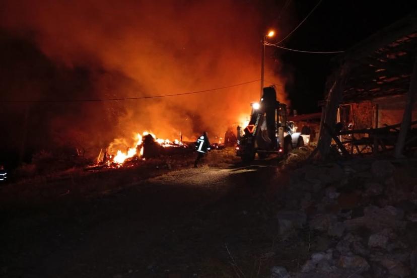 Olay yerine gelen ekiplerin müdahalesiyle yangın kısa sürede kontrol altına alınarak söndürüldü. Yangında ev, samanlık ve saman balyaları küle döndü.