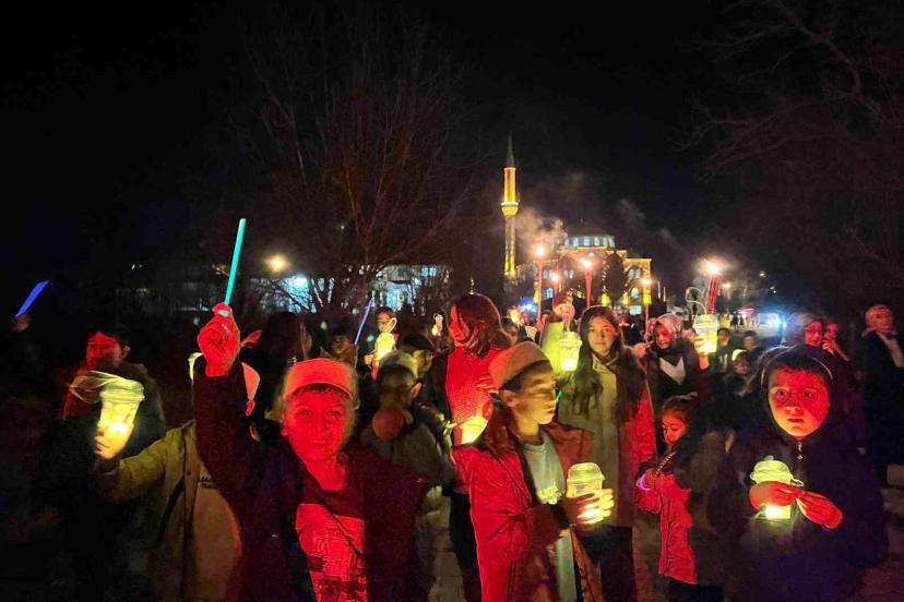 Çorum’un Laçin ilçesinde düzenlenen Ramazan etkinliğinde iftar sofrasında buluşan çoklar, ilahi söyleyip tasarladıkları fenerlerle camiye yürüdü.