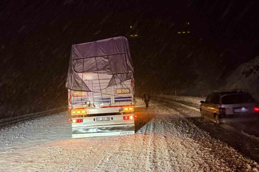 Çorum’un Alaca ilçesinde hava sıcaklığının yüksek rakımlı bölgelerde sıfırın altına düşmesinin ardından kar yağışı etkili olmaya başladı. Akşam saatlerinde başlayan kar yağışı sebebiyle bazı ağır tonajlı araçlar yollarda mahsur kaldı. Karayolları ekipleri ise kar yağışının ardından küreme çalışması başlattı.