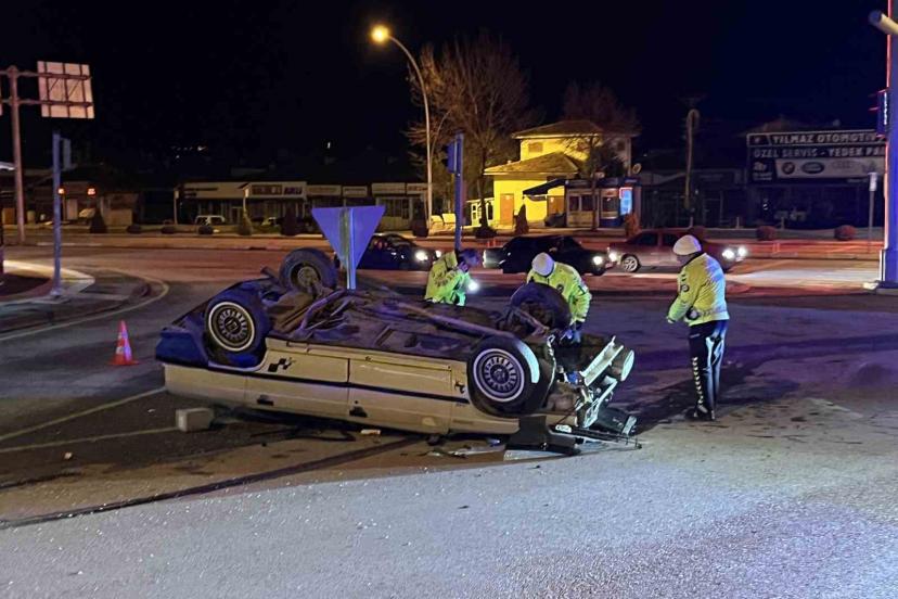 Çorum’da otomobilin kavşakta takla atması neticesinde sürücüsü yaralandı.