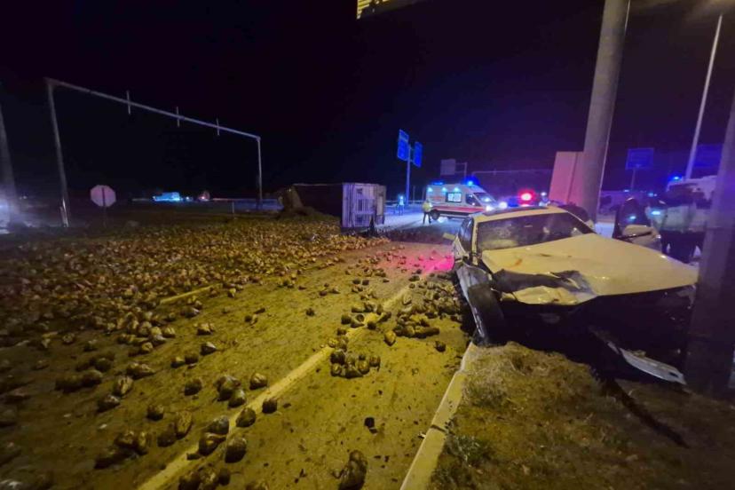 Çorum’da şeker pancarı yüklü tır ile otomobil çarpıştı: 3 yaralı
