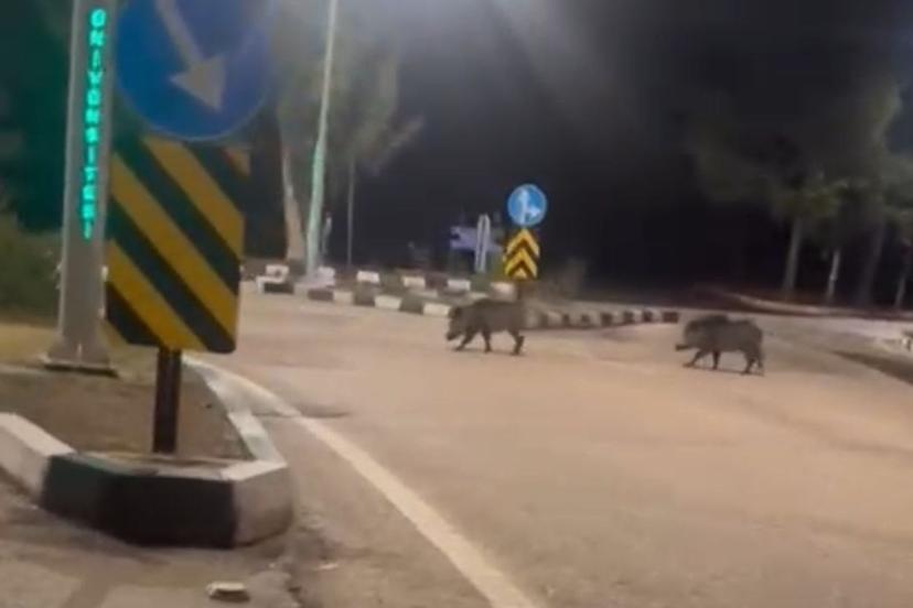 Çukurova Üniversitesi yerleşkesine sürü halinde giren domuzlar görüntülendi